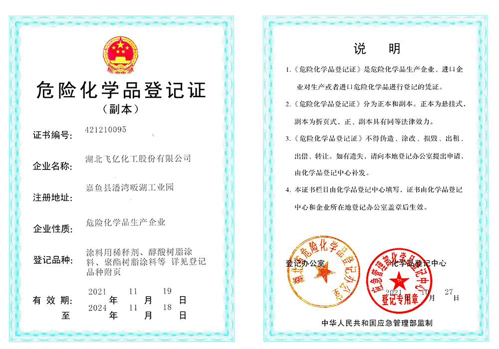 湖北飛億化工股份有限公司成立于2005年,專業(yè)從事各種油漆涂料稀釋劑的生產(chǎn)批發(fā),經(jīng)過公司全體員工的多年拼搏與努力,本著客戶至上、誠信至上、質(zhì)量至上的三上原則和高素質(zhì)、高效率、高品質(zhì)的三高理念,公司在木器稀釋劑行業(yè)中取得了不菲的成績。在公司以批發(fā)為主的行銷原則下,在湖北、湖南、浙江、山東、山西、陜西、江西、貴州、廣西、廣東、安徽、河南、河北、江蘇、甘肅、青海、西藏、新疆等地建立了良好和健康的銷售網(wǎng)絡(luò)。湖北飛億化工股份有限公司以人為本、倡導(dǎo)學(xué)習(xí)。經(jīng)過多年的凝聚和歷練,公司擁有豐富實(shí)踐經(jīng)驗(yàn)的技術(shù)人員和銷售、生產(chǎn)的團(tuán)隊(duì),不斷研發(fā)適合市場和客戶的高質(zhì)量產(chǎn)品。并努力爭取各項(xiàng)產(chǎn)品和服務(wù)達(dá)到客戶滿意。為滿足市場和客戶要求,湖北飛億化工股份有限公司于2013年投資興建了占地30000平方的集生產(chǎn)、檢測、庫存于一體的現(xiàn)代化生產(chǎn)基地,公司熱忱歡迎有志之士與我們共同成長、共同壯大和共同發(fā)展。
